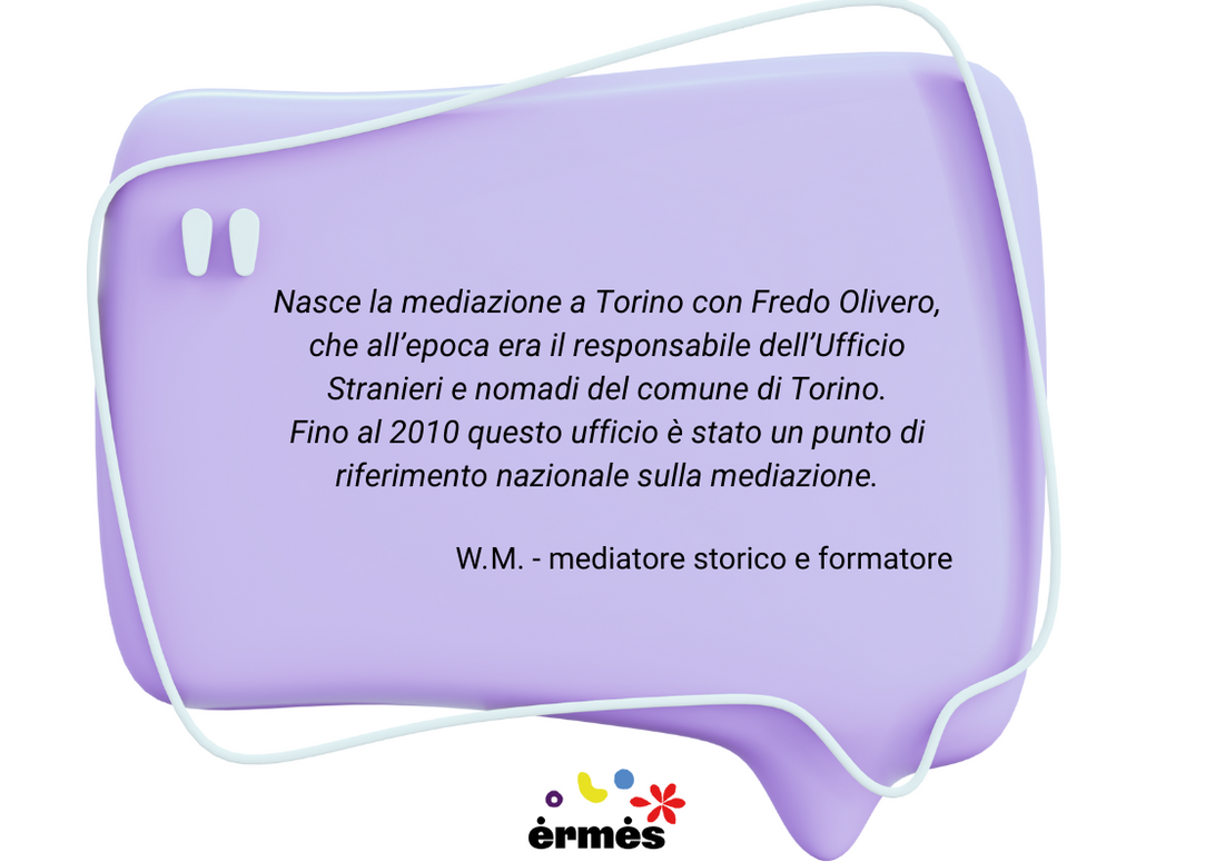 2010Tavolo sulla mediazione interculturale istituito da Città Metropolitana di Torino, IUS Rebaudengo, Enaip Piemonte e A.M.M.I.Prima e unica assunzione stabile di mediatori/trici all'Ospedale Maggiore della Carità di Novara2011Nasce il Forum MediaToNasce come rete di confronto tra gruppi di mediatori e mediatrici all'interno del progetto MediaTo.