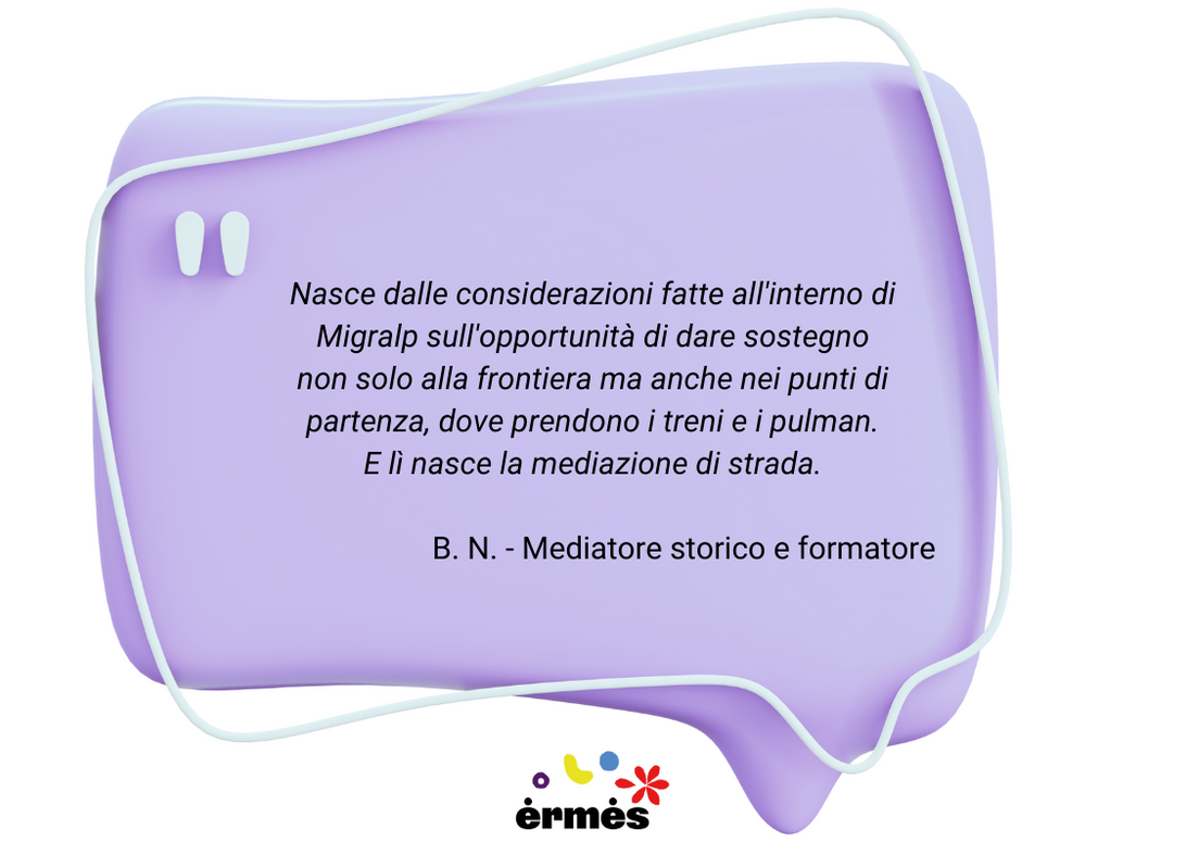 Creazione dell'Associazione dei mediatori interculturali di Cuneo2017Attivazione del punto di ascolto e di orientamento all'interno del progetto Migralp a Bardonecchia - OulxInserimento stabile dei/lle mediatori/trici nelle equipe di lavoro del dipartimento servizi sociali, socio-sanitari e abitativi del Comune di Torino2018Attivazione della mediazione di strada con la cooperativa AtypicaOASI - Orientamento, Ascolto, Supporto, Integrazione per le persone rifugiate in movimento sulla Città di Torino a cura dell'Ass. Mosaico2019Costituzione di equipe di lavoro con mediatori/trici, case manager e operatori/trici dei Centri Per l'Impiego (CPI)Attraverso il progetto PRIMA - Pensare Prima al Dopo