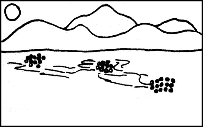 Viene inquadrato e descritto un ampio panorama. Lo sguardo è