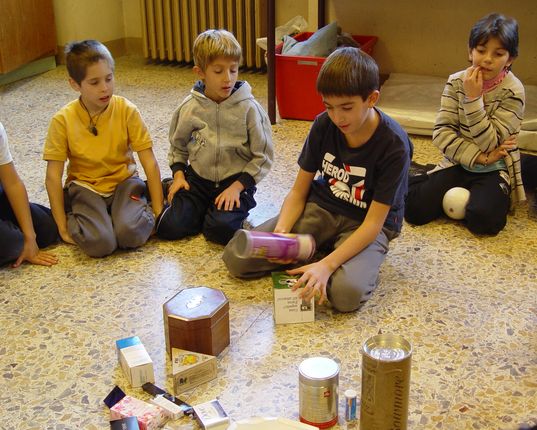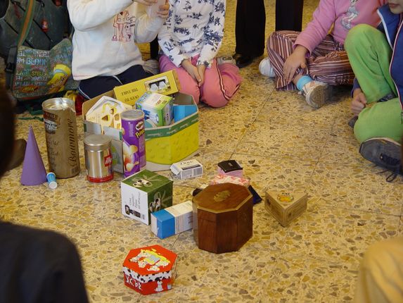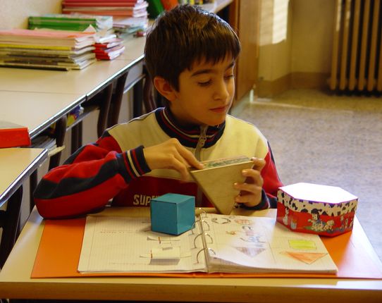 "Le scatole a forma di parallelepipedo, prisma, piramide, cilindro, cubo, cono ecc...sono tridimensionali perché posso mettere dentro delle cose"