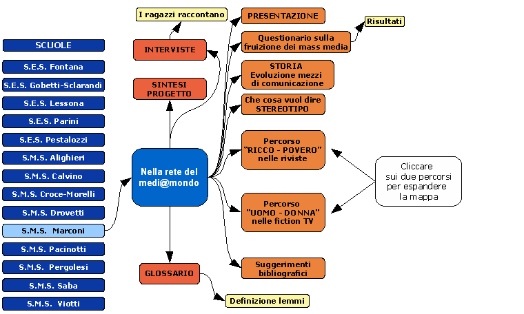 Risultati questionario Scuola Media Viotti Scuola Media Saba Scuola Media Pergolesi Scuola Media Pacinotti Scuola Media Marconi Scuola Media Drovetti Scuola Media Croce-Morelli Scuola Media Calvino Scuola Media Alighieri Titolo Scuola Elementare Gobetti-Sclarandi Scuola Elementare Lessona Scuola Elementare Parini Scuola Elementare Pestalozzi Scuola Elementare Fontana Scuole Glossario Storia UOMO-DONNA RICCO-POVERO Evoluzione mezzi comunicazione Suggerimenti bibliografici Presentazione Questionario fruizione mass media Che cosa vuol dire stereotipo Sintesi progetto Interviste Definizione lemmi I ragazzi raccontano