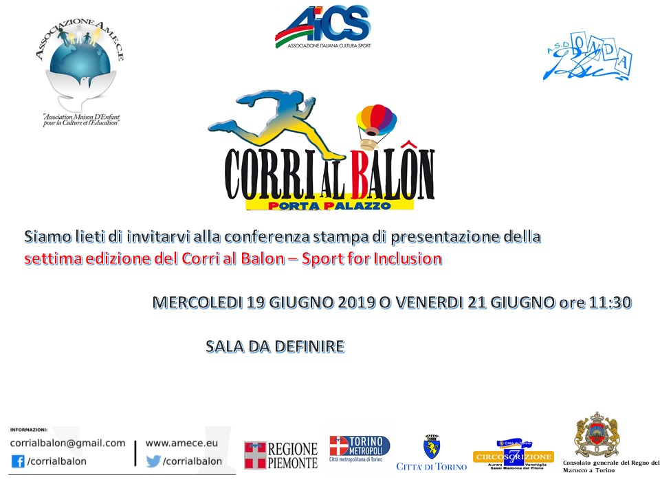 L'associazione AMECE (Association Maison d’enfant pour la culture et l’education) promuove la settima edizione di "Corri al Balôn”, evento sportivo che si svolge fra le strade di Borgo Dora nell’area di Porta Palazzo, uno dei quartieri più caratteristici di Torino.