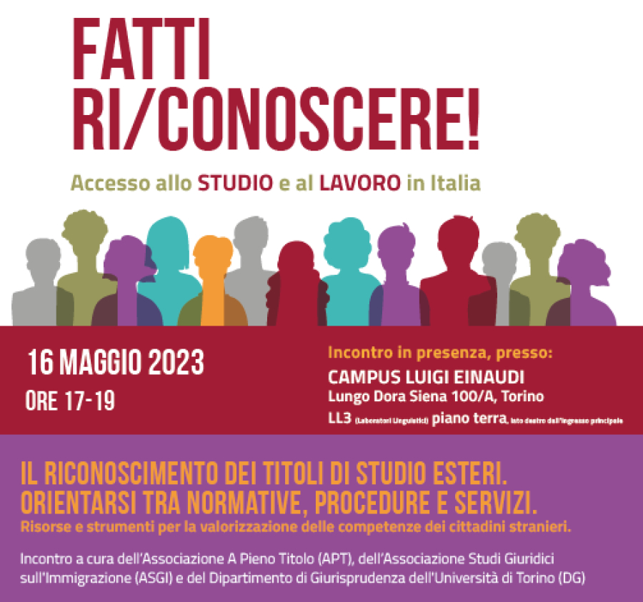 Incontro Il riconoscimento dei titoli di studio esteri: orientarsi tra normative, procedure e servizi. Risorse e strumenti per la valorizzazione delle competenze dei cittadini stranieri, nell'ambito del progetto Fatti Ri/Conoscere!